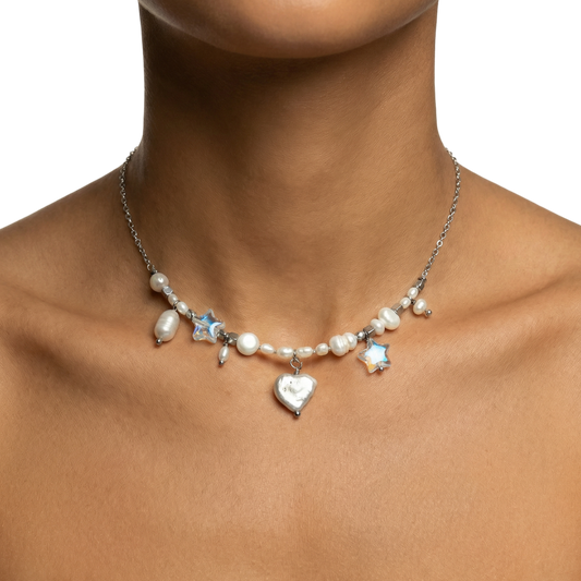 layering our Coquette Collection necklaces on the beach -