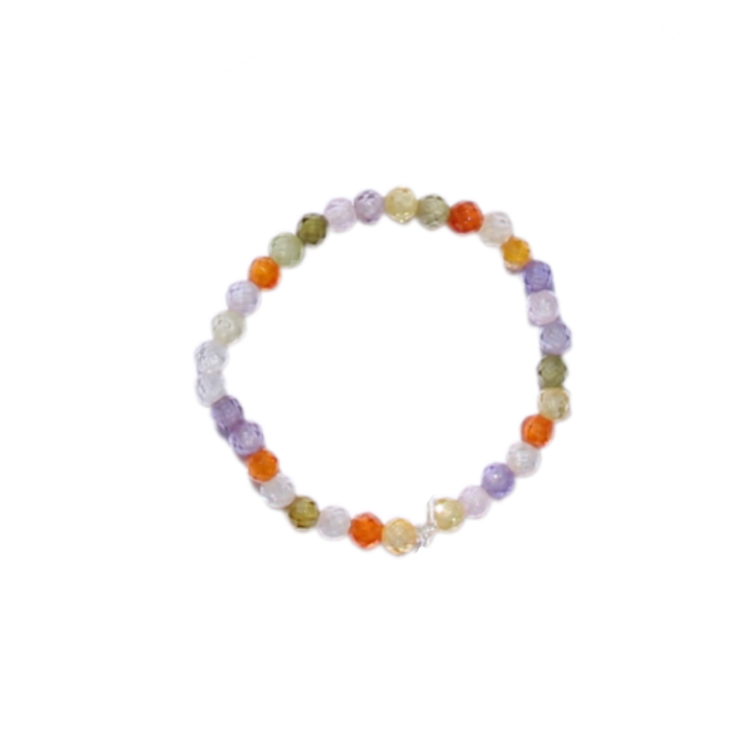 One size elastic ring with 2.0mm light mixed jade faceted round beads strung on monofilament.