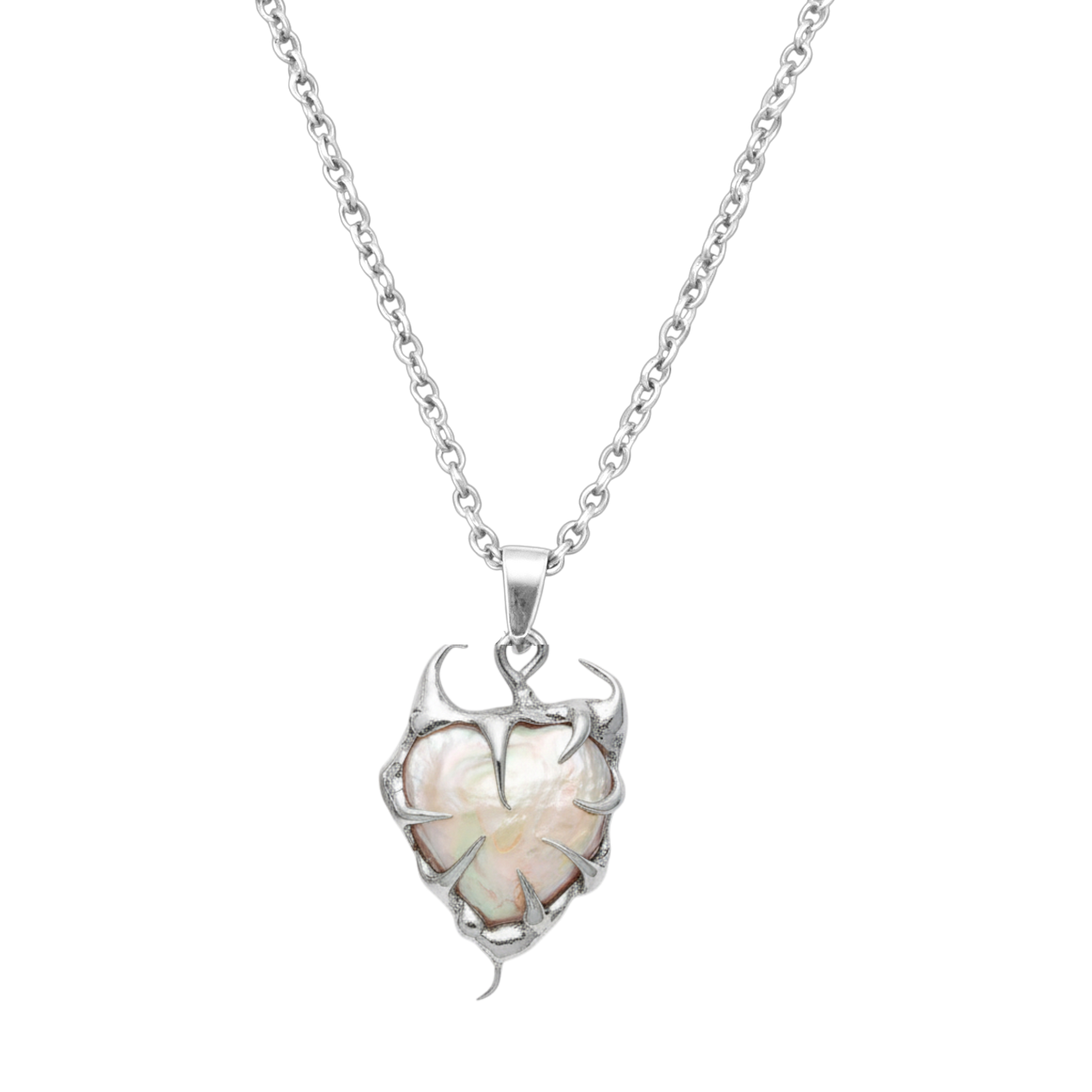 SPIKY 15mm heart shaped freshwater pearl in a stainless steel shain.