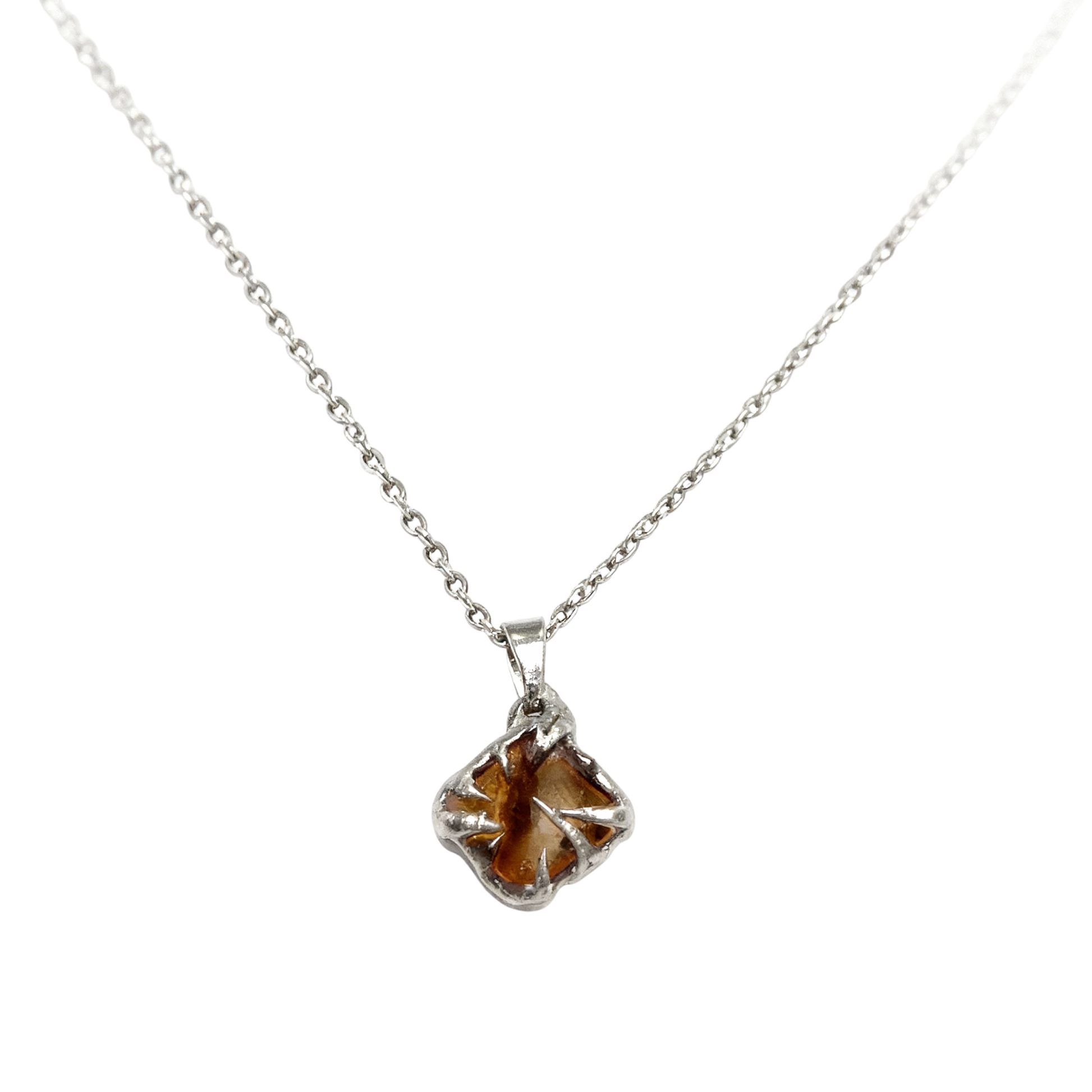Spiky natural shell necklace in a stainkless steel chain. Please note that each piece varies in colour, shape and size.